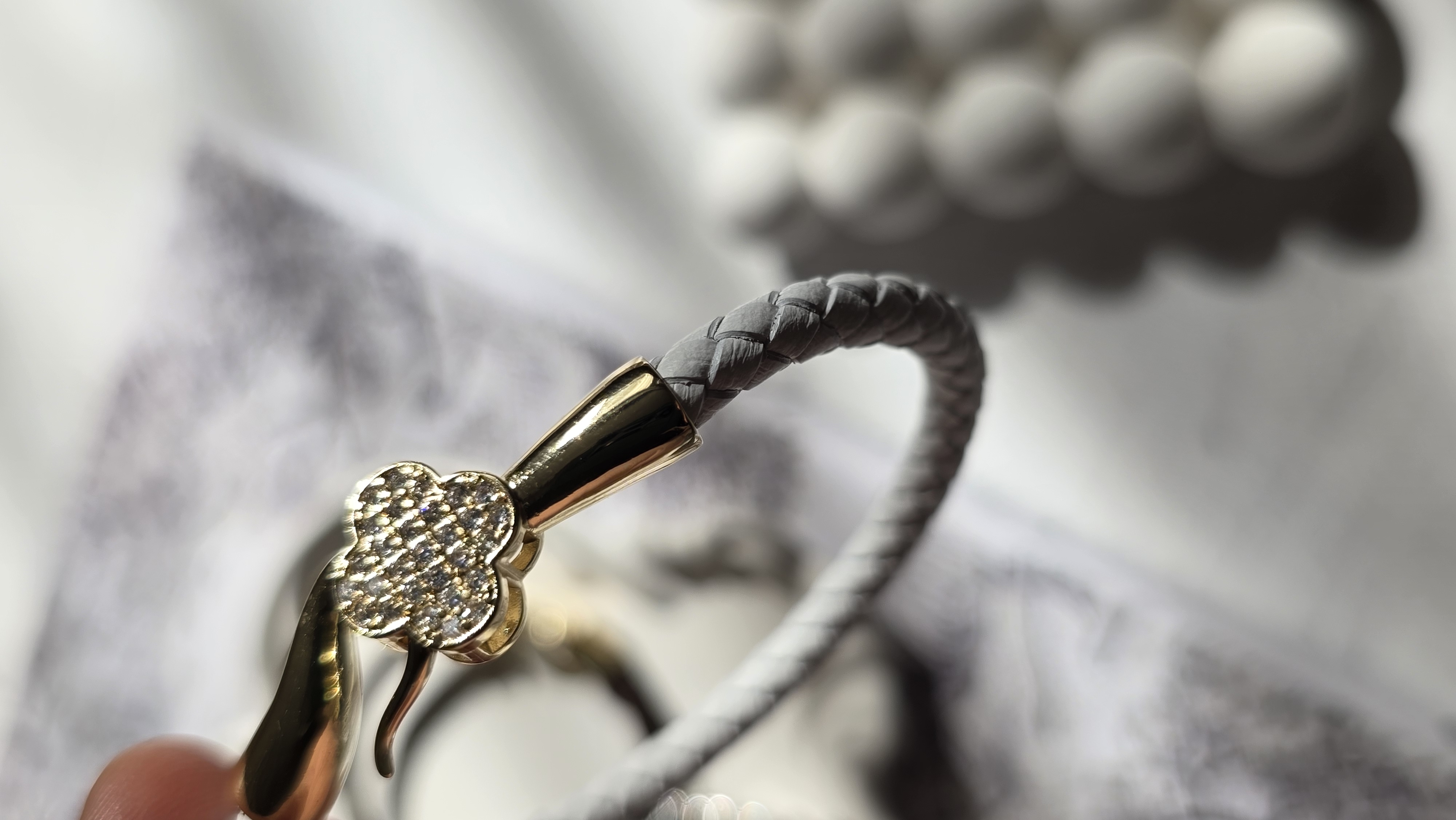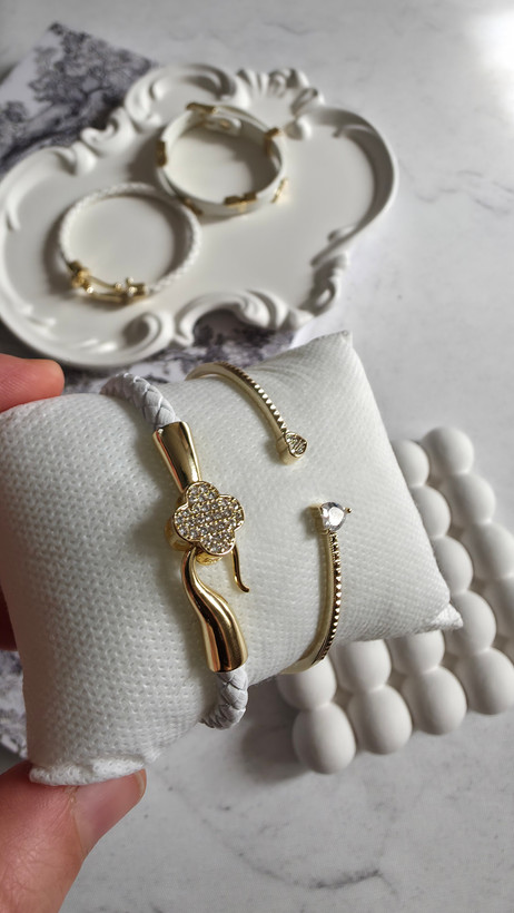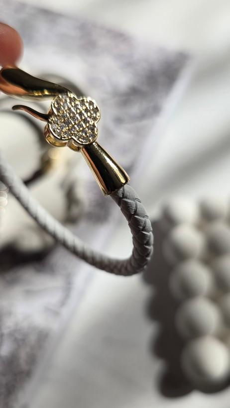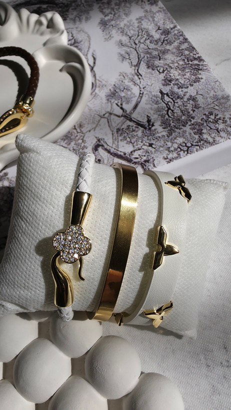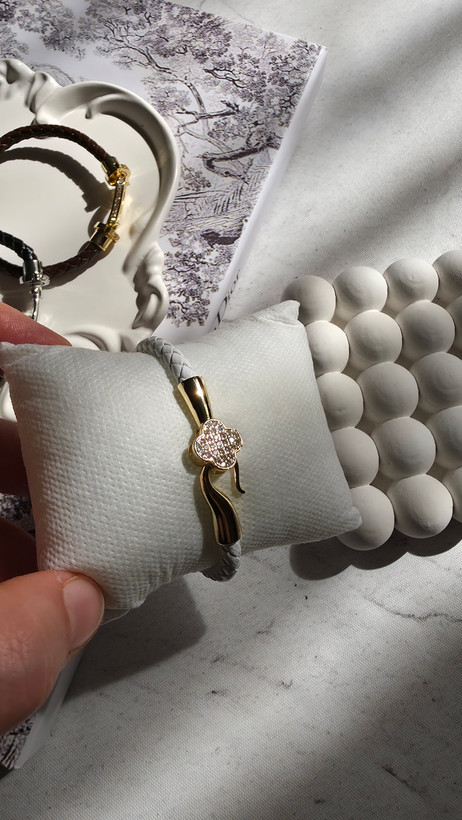دستبند چرم زنانه ونکلیف / سفید / قفل زیبا و آبکاری / نگین دار