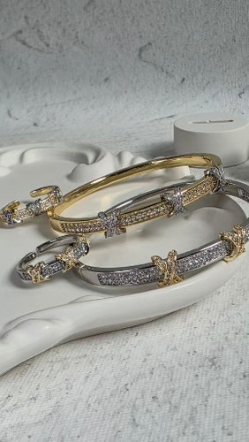 دستبند زنانه ، بنگل لوکس جواهری مدل پاپیون آبکاری نقره ضد حساسیت و فری سایز
