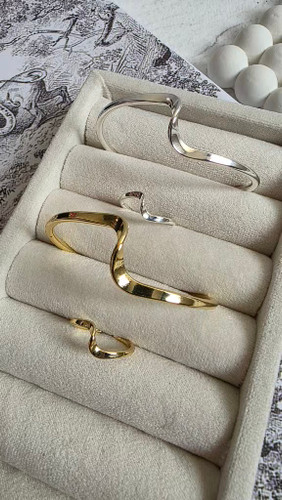 ناموجوددستبند زنانه مدل موج دولاین آبکاری طلا/نقره ، رنگ ثابت و ضد حساسیت